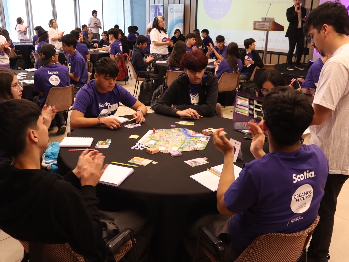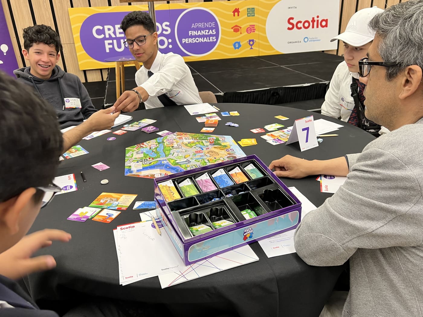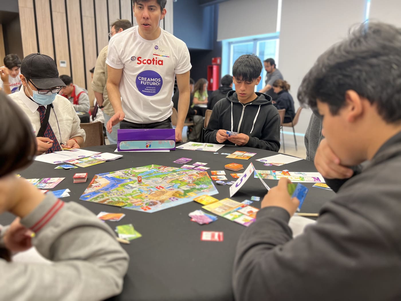 De manera inédita se desarrolló una versión del Torneo Creamos Futuro en el que colaboradores de Banco Scotiabank Chile junto a sus hijos vivieron una experiencia lúdica de aprendizaje en finanzas personales a través del juego.