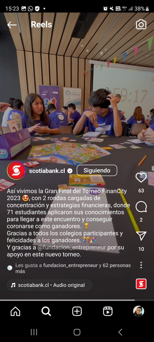 Para aumentar el impacto y la escabilidad del Proyecto Creamos Futuro, en 2024 Fundación Entrepreneur fue ganadora de los Fondos Concursables ScotiaINSPIRA con un nuevo proyecto denominado FinanCity: Juega y Aprende a Manejar tus Finanzas, el cual lleva los beneficios del Creamos Futuro a comunidades educativas de las regiones de Maule, Biobío y Ñuble.