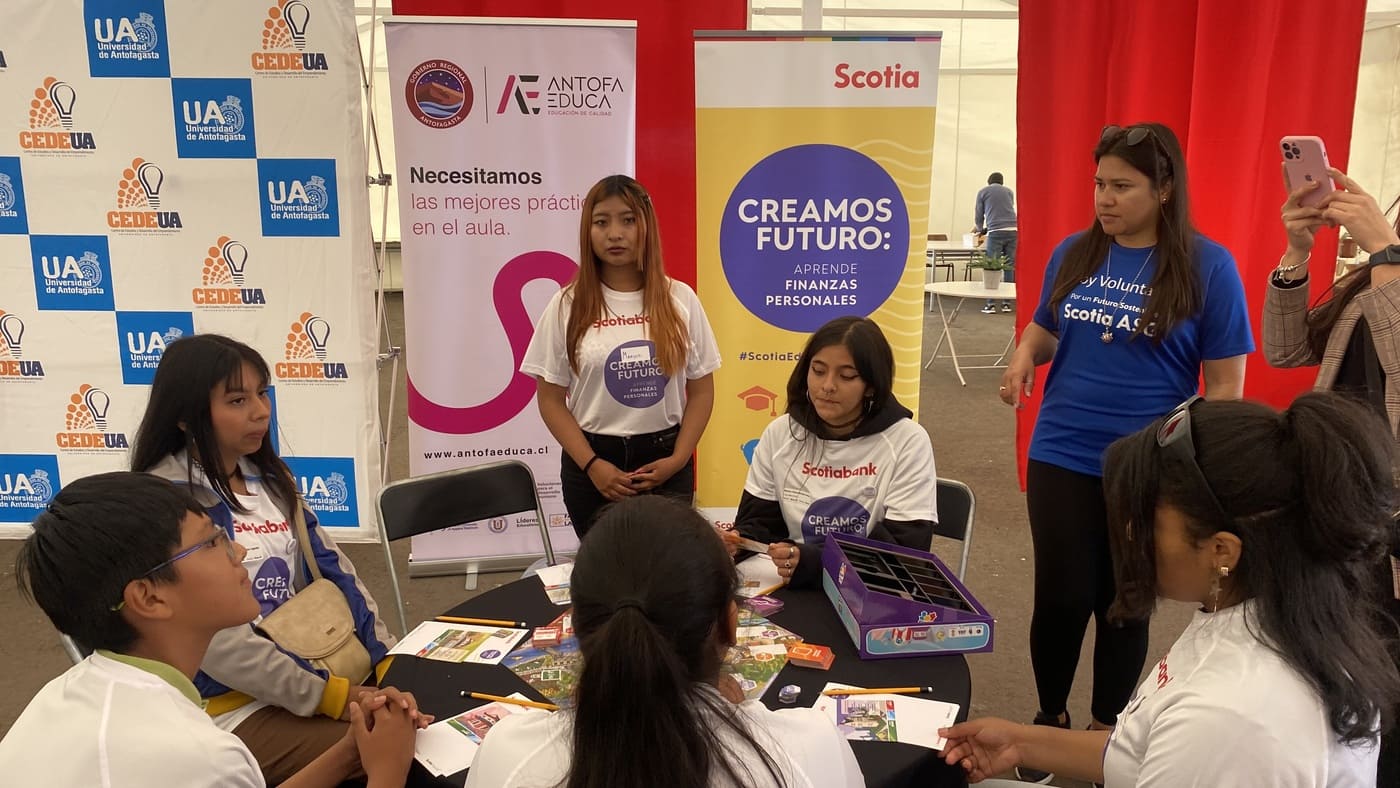Como parte de sus actividades de voluntariado, colaboradores de Banco Scotiabank Sede Antofagasta hicieron visitas a los establecimientos educacionales Escuela Ecológica Humberto González Echegoyen D-12, Escuela Ecológica Padre Alberto Hurtado D-138 y Escuela Fundación Minera Escondida F-89, en donde acompañaron a docentes y estudiantes en la implementación en aula de FinanCity como herramienta central ya sea para la entrega de contenidos curriculares, como actividad extraprogramática o como parte de un taller de finanzas personales, todos centrados en la metodología de Aprendizaje Basado en Juegos.